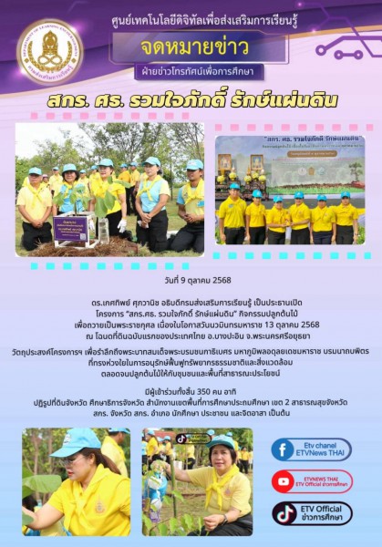 อธิบดีกรมส่งเสริมการเรียนรู้ ดร.เกศทิพย์ ศุภวานิช เป็นประธานเปิดโครงการ "สกร. ศธ. รวมใจภักดิ์ รักษ์แผ่นดิน"
